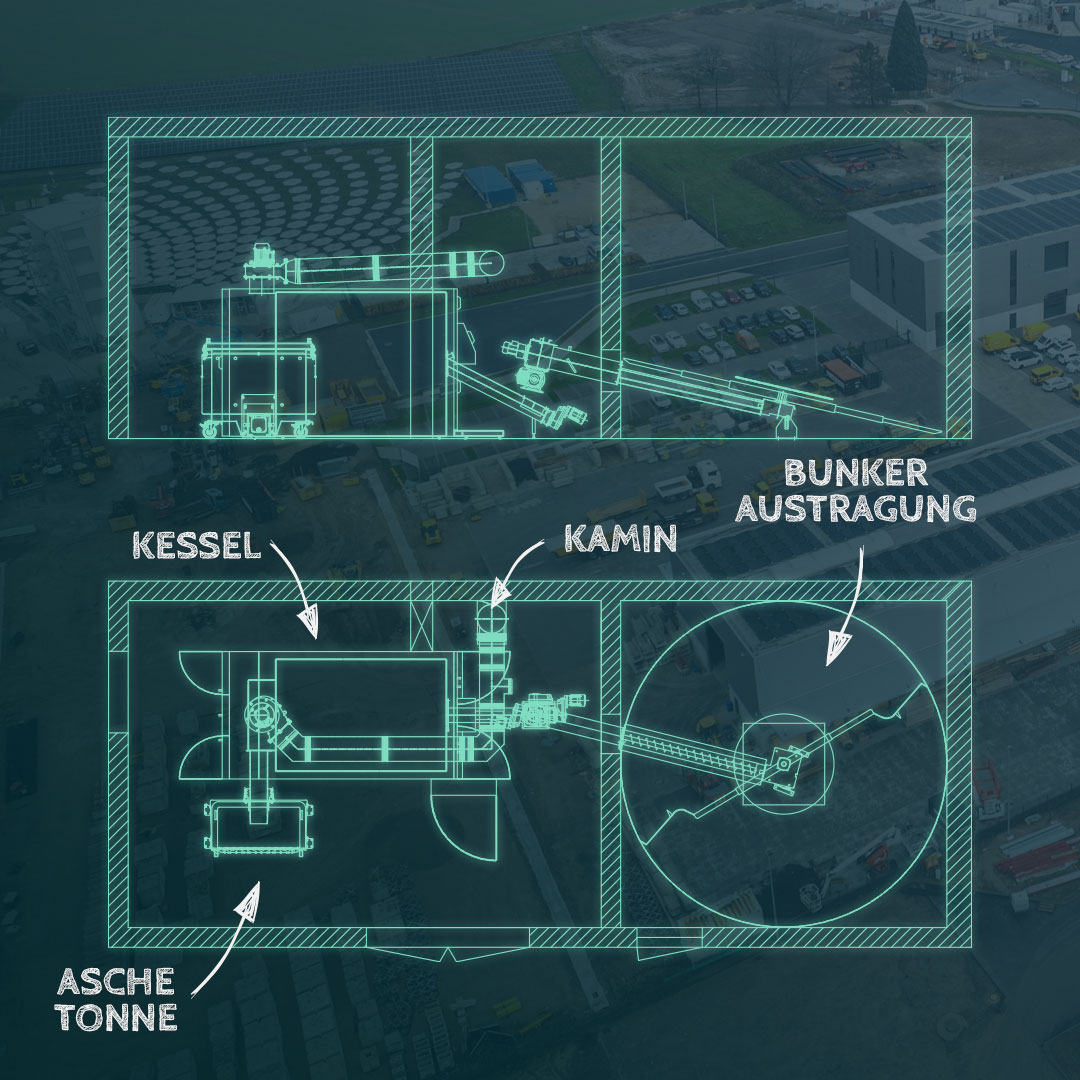 Am neuen Firmensitz entstehen moderne Büroflächen, Werkstätten sowie Produktions- und Lagerbereiche mit ganzjährig hohem Wärmebedarf. Genau hier setzt das neue Wärmekonzept an: Kombination aus Wärmepumpen und einer leistungsstarken Biomasseheizung mit 200 kW Nennleistung.