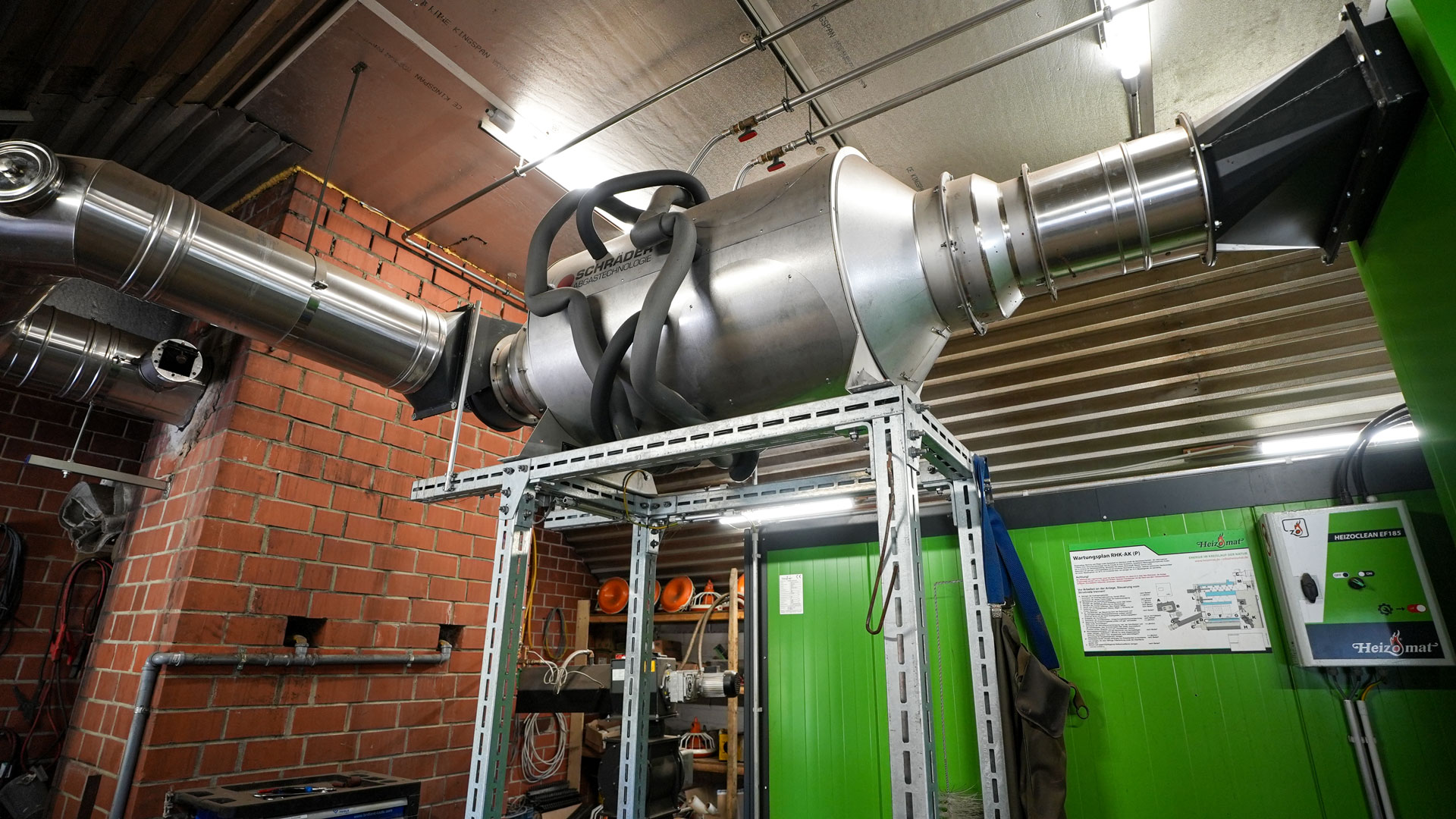 Die alte Heizzentrale beherbergt jetzt auch den neuen Biomassekessel samt Emissionstechnik und Abgaswärmetauscher.