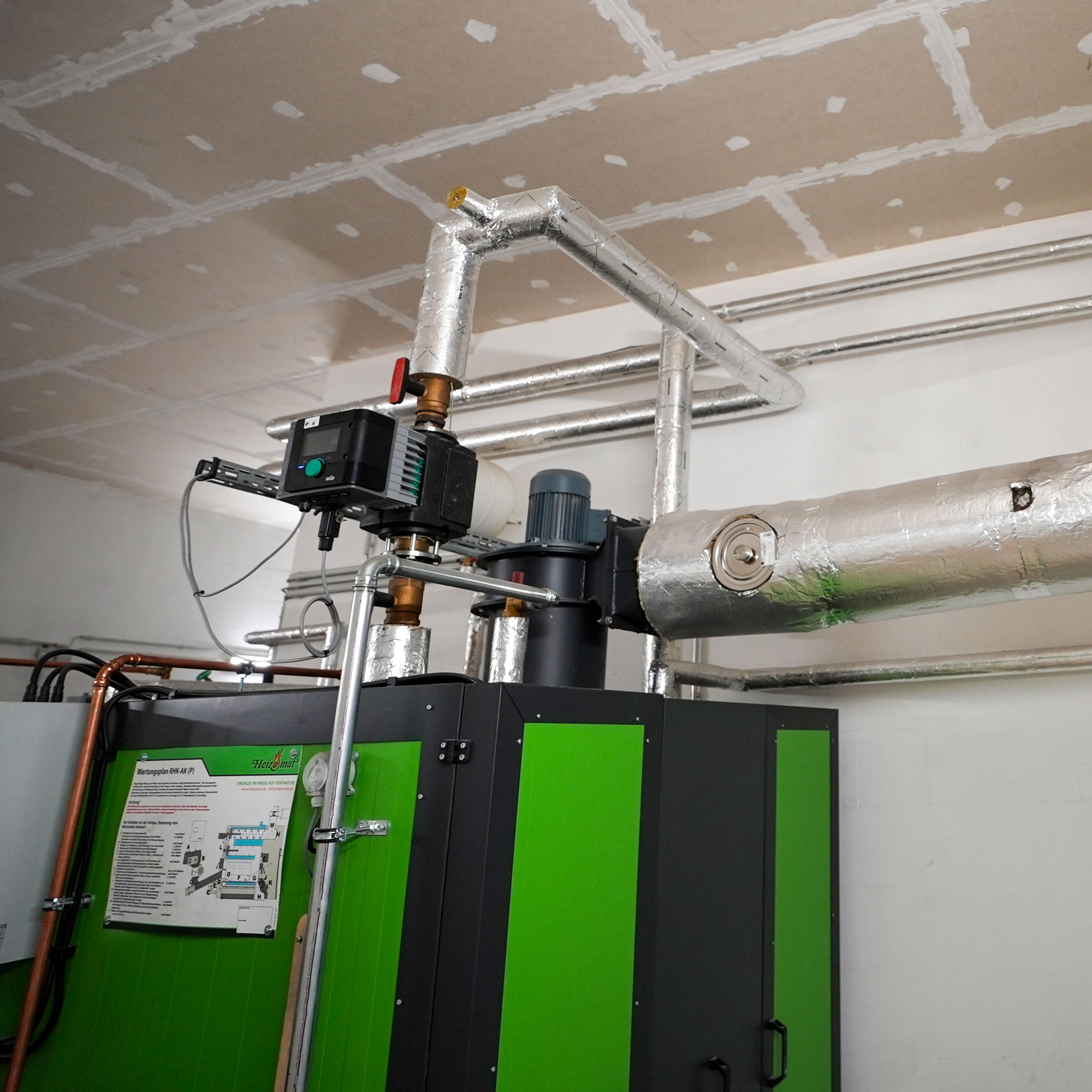 Der bereits vorhandene Raum wurde zur Heizzentrale umfunktioniert. Sie beinhaltet den AK-Kessel, die Pufferspeicher, Steuerung und die hydraulische Anbindung.